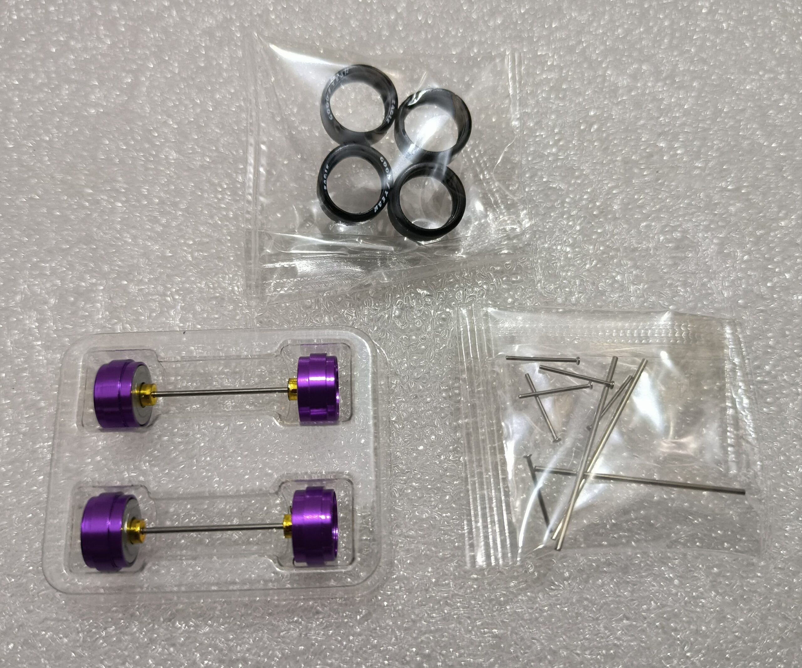 Content in the package: 4 Rims , 4 Rubber tyres, Extra Set of Axels with pins